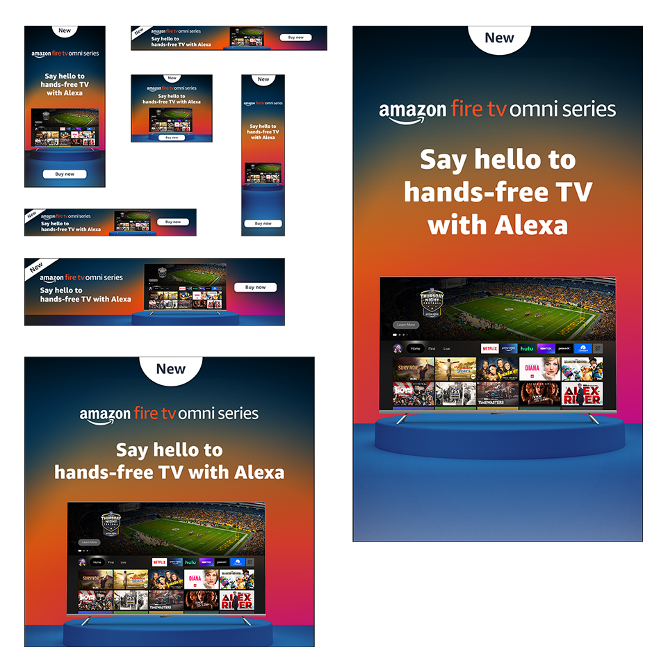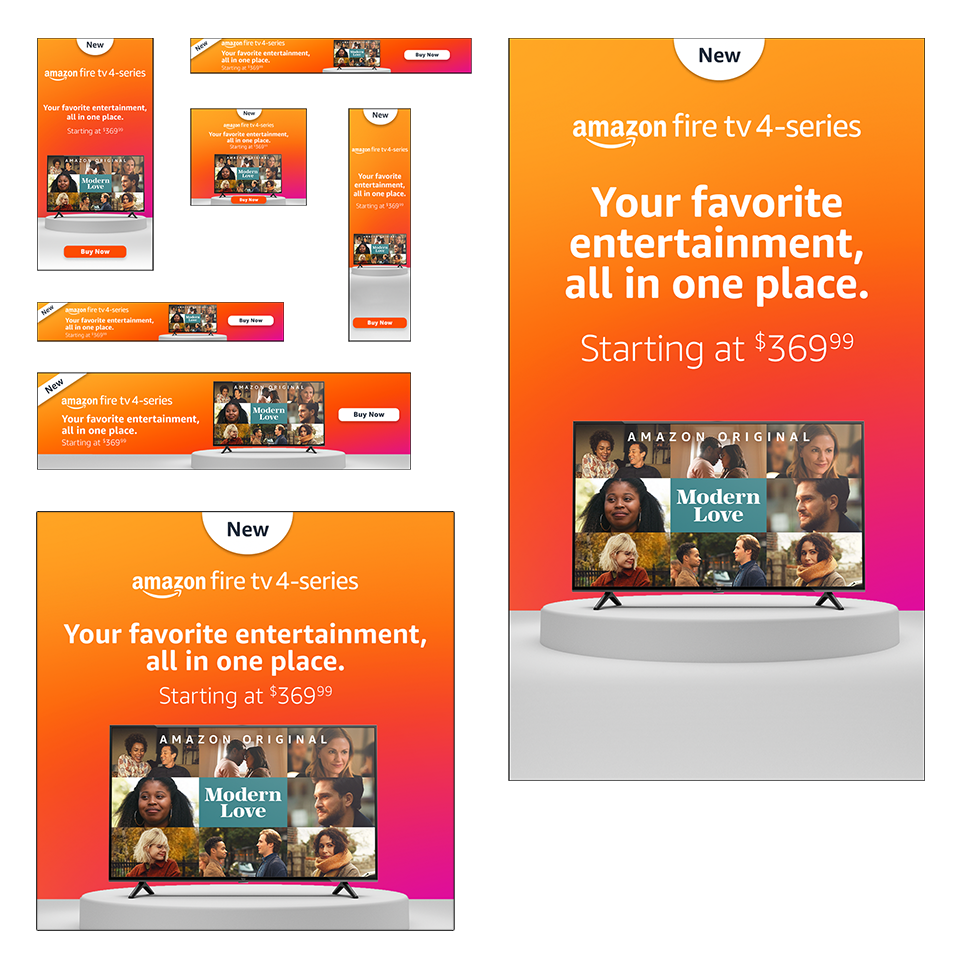 Amazon Fire TV and Fire TV stick social ads built to various marketing channel specifications.